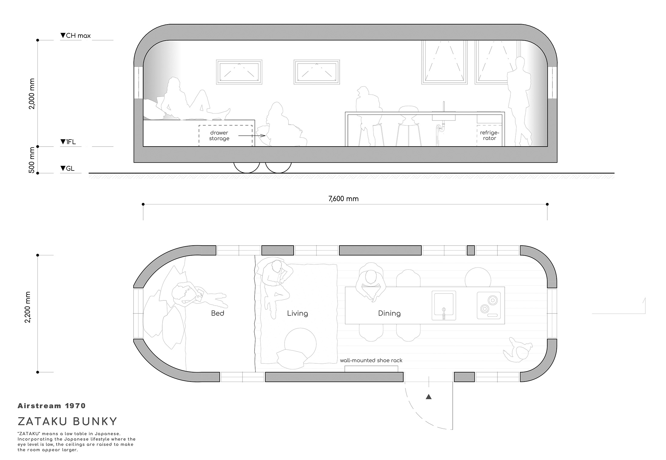 代表の友人でもある施主から、敷地内にあるエアストリームを活かしたいという依頼を受けました。 この小さな空間は、Airbnbでの滞在を想定した簡易宿泊施設として計画されています。