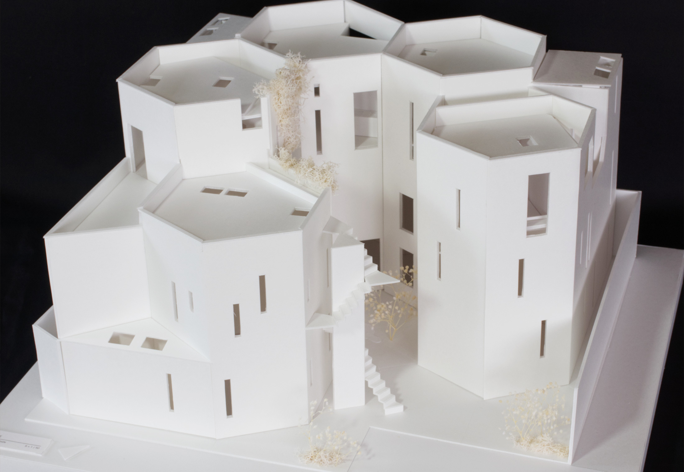 幾何学的な六角形のユニットを用いた、賃貸住宅の計画です。 建築、中庭のユニットは蜂の巣(Hive)のように連なり、構造的な強さと柔軟な増築性をあわせ持ちます。